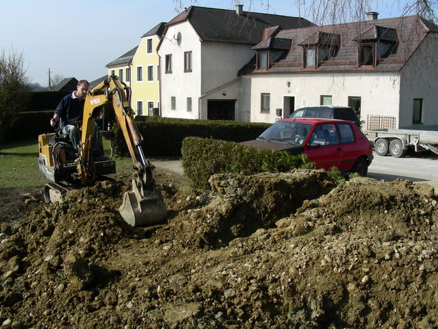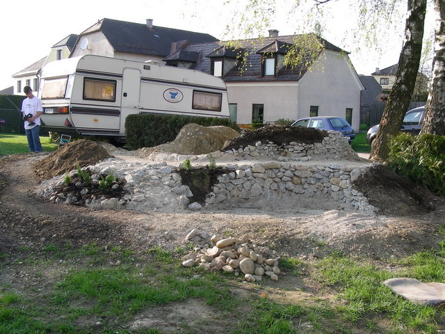 Ostern 24.04. 2011 das Wetter is schön also gehts am Parcour weiter Ideen gibts viel, als erstes wird mal Platz geschaffen für die neue Siebanlage die hier fix aufgestellt wird, weiters schwebt uns schon lange ein Bachlauf mit dazugehörigem See vor. |