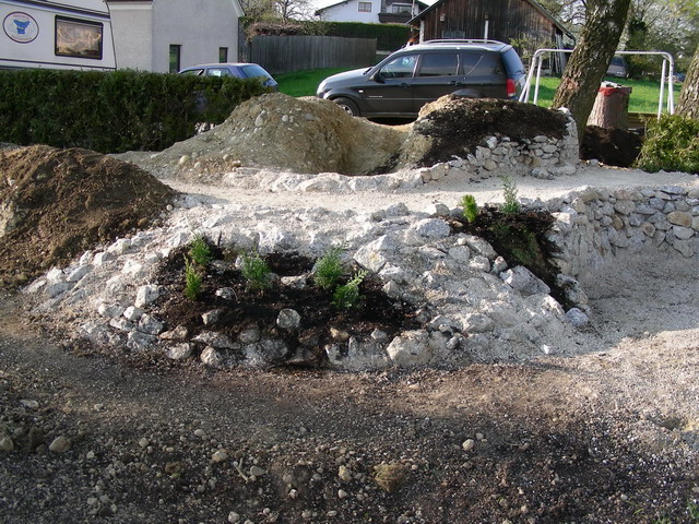 So schaut´s am 5.Okt.2009 aus, nachdem wieder einige meter Steinmauer dazugekommen sind. Für die Freude der Landwirtschaftlichen Geräte wurde noch ein Feld abgegrenzt zum pflügen und säen .